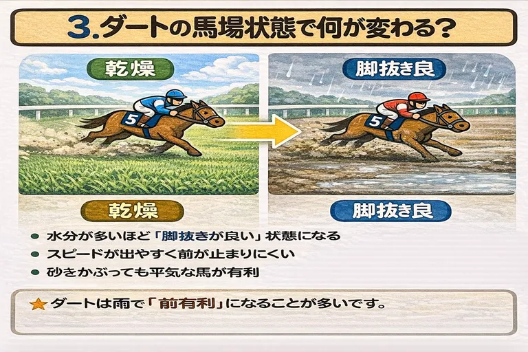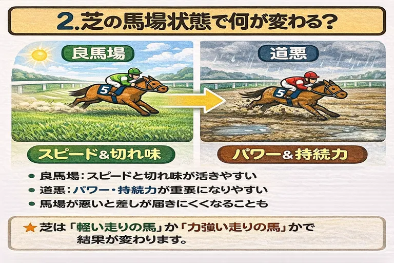 馬場状態が予想にどう影響するのかを、図解でわかりやすく解説します。