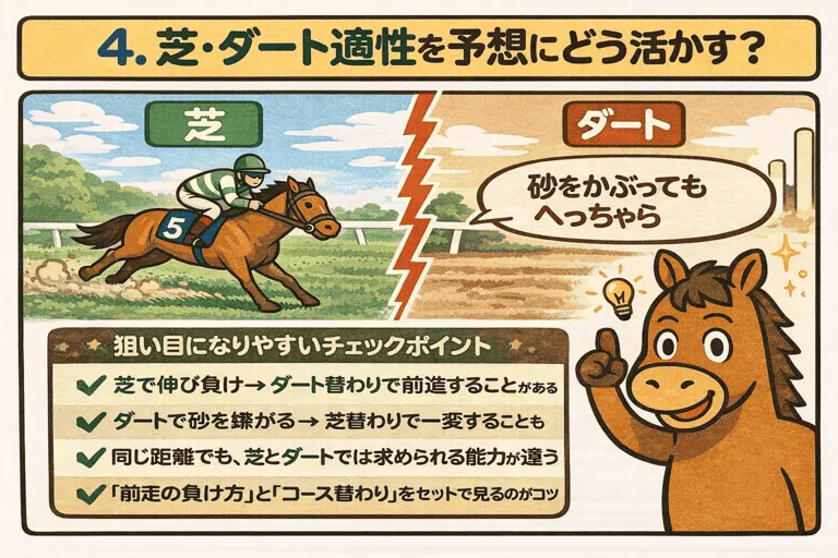 - ダートで砂を嫌がる → 芝替わりで一変することも