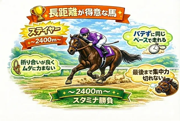 競馬では、レースの距離によって求められる能力が大きく変わります。