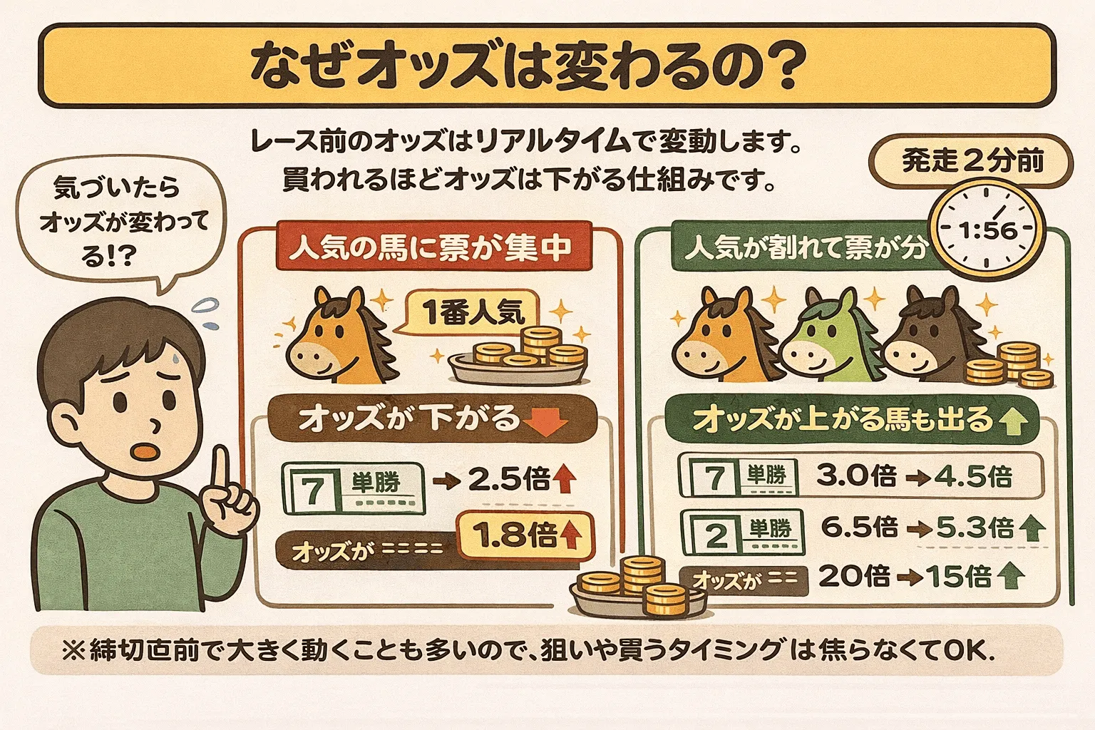 これは、買われる馬に投票が集まるほどオッズが下がる仕組みだからです。